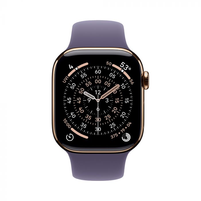 Apple Watch Series 11, 42 mm, Gold Titanium GPS+Cellular, Purple Fog Sport Band S/M