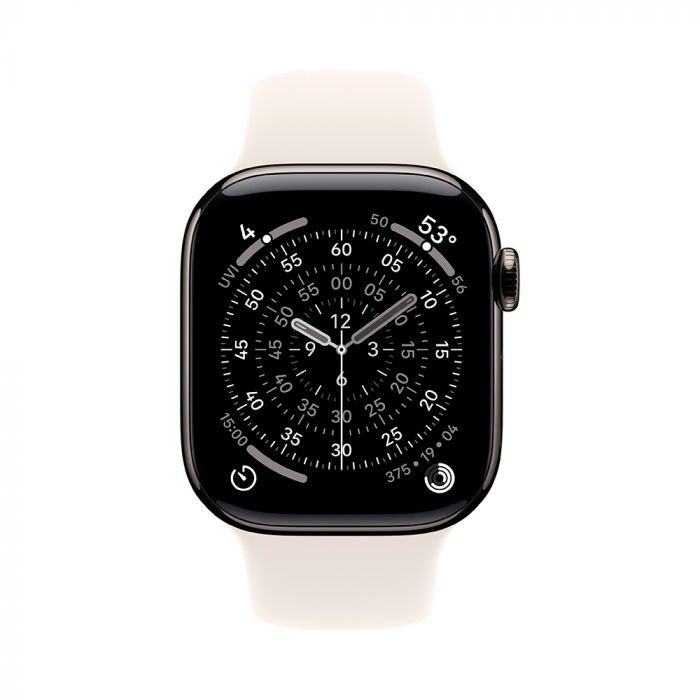 Apple Watch Series 11, 42 mm, Slate Titanium GPS+Cellular, Starlight Sport Band S/M