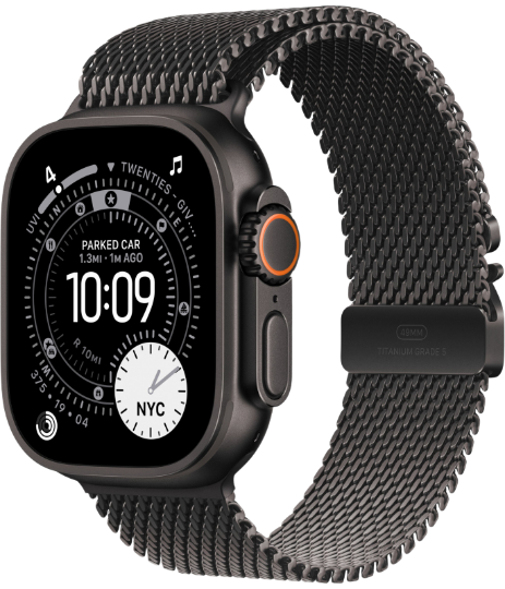 Apple Watch Ultra 3, Black Titanium Case with Black Titanium Milanese Loop (M)